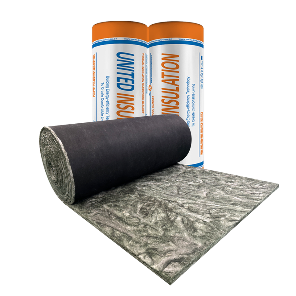 Couvertures d'isolation thermique de haute qualité Rouleaux de laine de verre Couverture acoustique en laine de verre noire avec revêtement en tissu noir