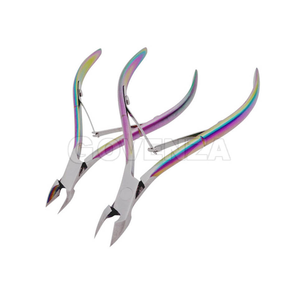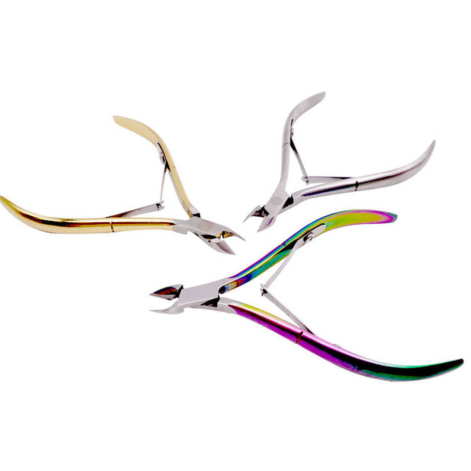 Coupe-cuticules incurvé de haute qualité à trois couleurs, 16 dents, double ressort, arc-en-ciel, or, argent, D501, outil de manucure