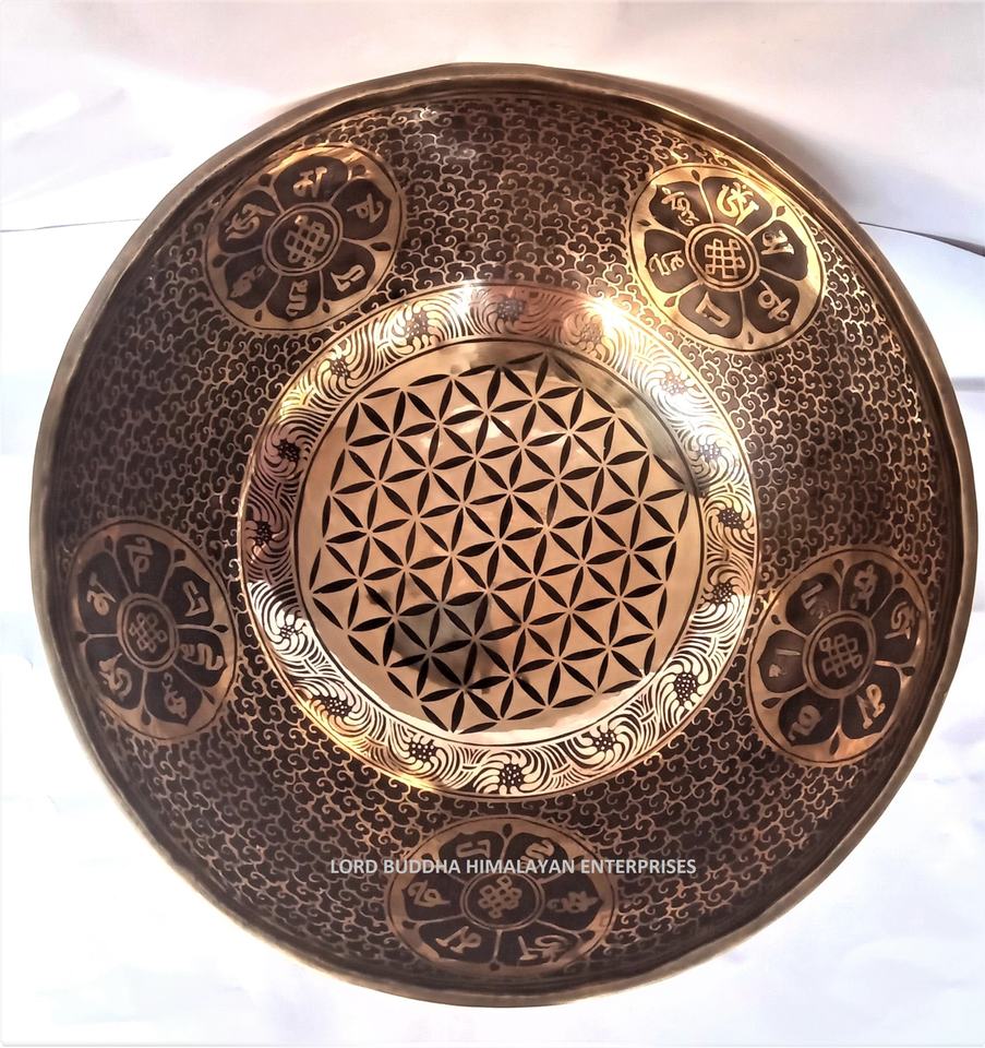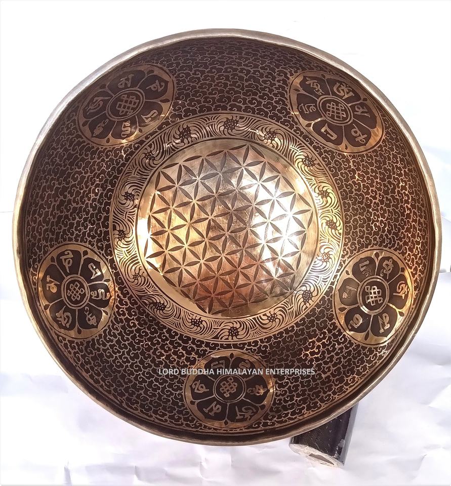 High Quality Tibetan Special Art Brass Singing Bowls Laser Carved Feng Shui Style Metal Material