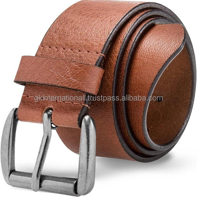 Ceinture décontractée en cuir pour hommes de couche supérieure de haute qualité pour jeans dans toutes les tailles personnalisées avec boucle à une broche en argent antique