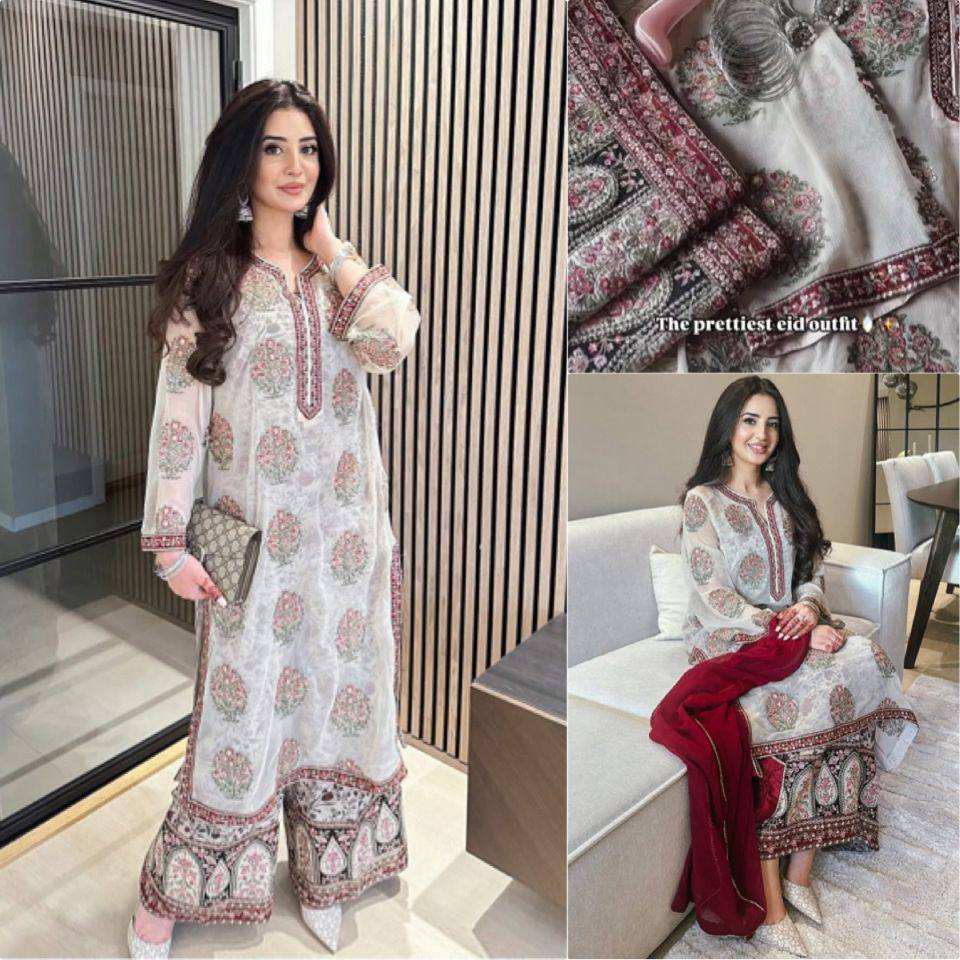 High Quality Top-Palazzo Collection Heavy Faux Georgette Silk Fabrics With Embroidery 5 MM Sequence Work For Women Wedding Wear