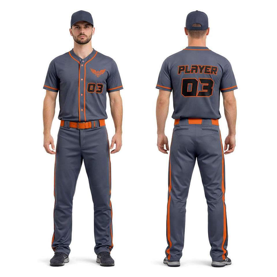 Custom Gray Orange Baseball Uniform Set Men Breathable Sports Jersey Pants Team Wear Athletic Outfit
