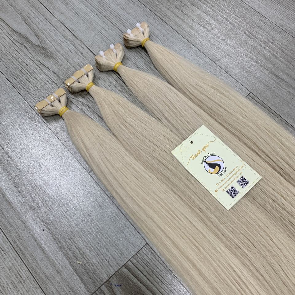 Extensions de bande invisible en platine naturelle droite super doublement étirée Perruques de cheveux humains vietnamiens de haute qualité les plus vendues