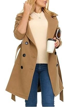 High Quality Top Selling Women's Brown Color Blank Overcoat For Girls Business Meeting Office Wool Warm Winter Belt Trench Coats