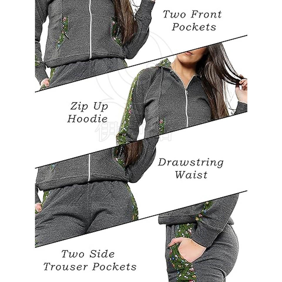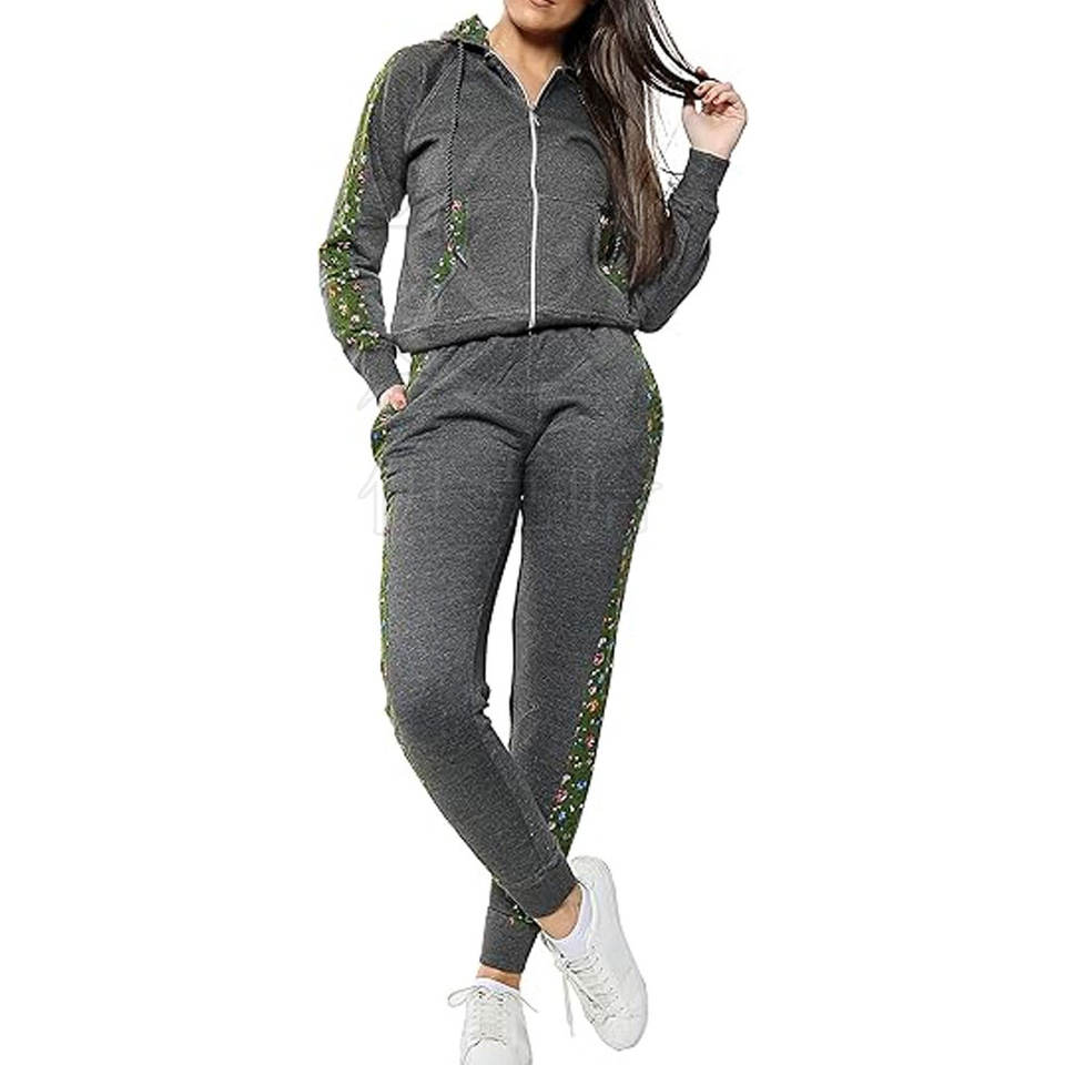 Survêtement de haute qualité avec broderie détaillée et survêtement de broderie deux pièces coupe confortable avec poignets et taille côtelés