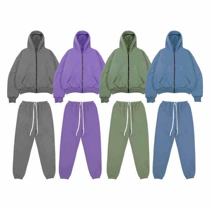 Survêtements de haute qualité Logo personnalisé Surdimensionné 100% coton 400 450 gsm Sweat à capuche zippé et survêtement évasé Ensemble Survêtements pour hommes