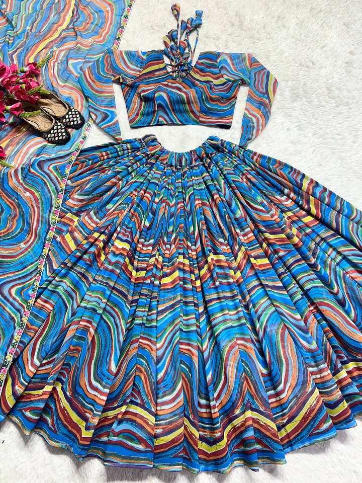 Impression numérique de broderie de Georgette indienne et pakistanaise traditionnelle de haute qualité Lehenga Choli Dupatta pour les fêtes d'hiver et d'été