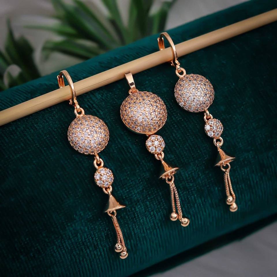 High Quality Traditional Long Drop Pendant Set Gold Plated Stainless Steel with Zircon Stones Trendy Style Women's