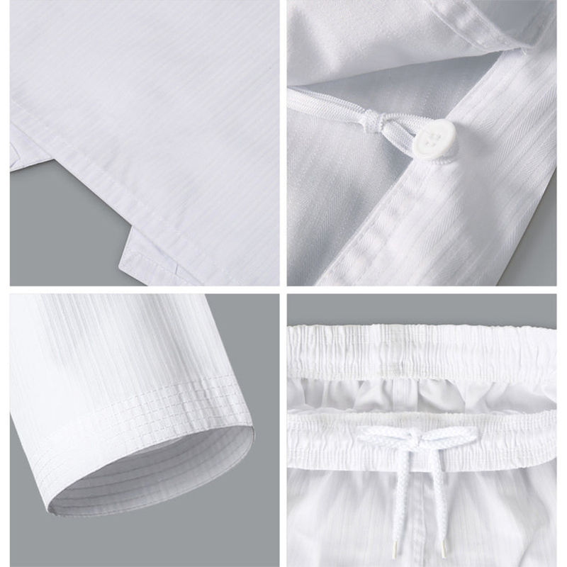 Uniforme de Taekwondo Traditionnel Blanc Personnalisable de Haute Qualité, Tissu Mélange 45% Coton 55% Poly, Respirant et Séchage Rapide, Ensembles Frontaux