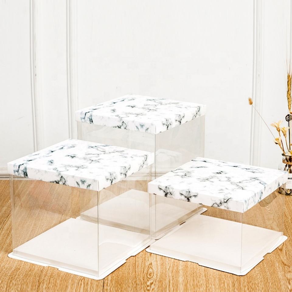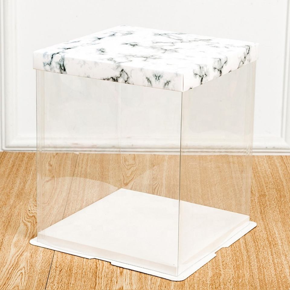 Boîte à gâteau transparente de haute qualité avec motif marbré, options de lamination brillante/mate et d'impression en relief, vente en gros