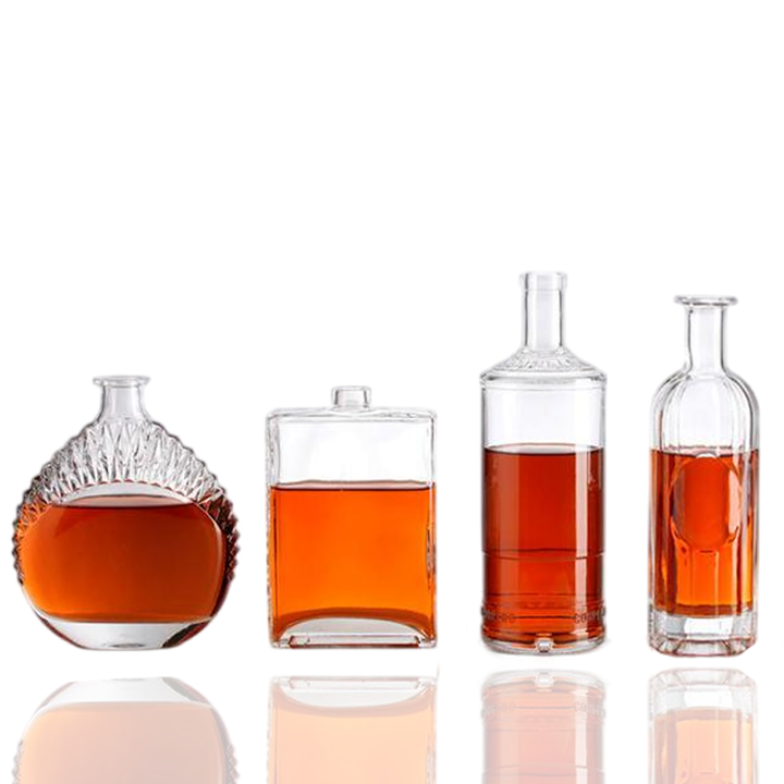 Bouteilles en verre transparent de haute qualité vides Bouteilles liquides multiformes Vodka Whisky Tequila avec bouchon en liège