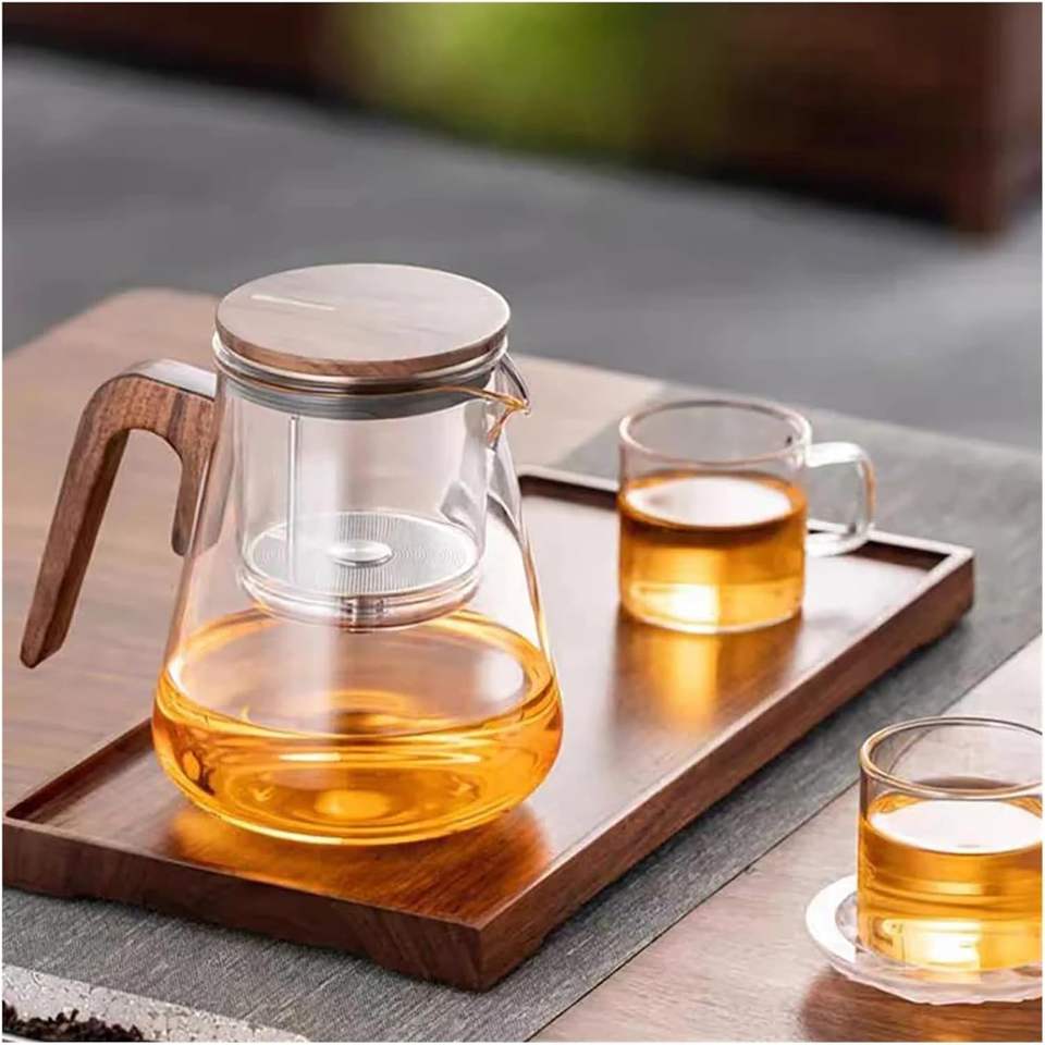 Théière en verre transparent de haute qualité avec couvercle en bois résistant à la chaleur et facile à nettoyer prix de gros fuite de thé empêchée