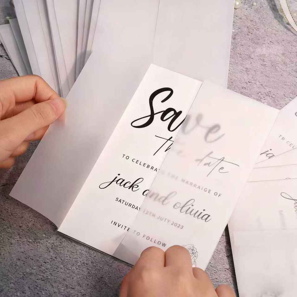 Papier calque transparent de haute qualité, papier à enveloppes triple pli, cartes d'invitation de mariage pour la fête des mères - Écologique et créatif