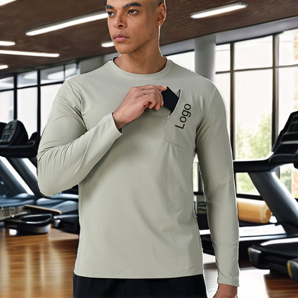 T-shirt de compression athlétique à manches longues et col rond pour homme, 100 % polyester, anti-plis, personnalisable, 180g, haute qualité, tendance automne