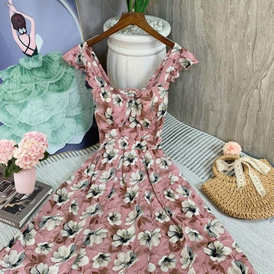 High Quality Trendy Maxi Dress with Square Neck and Colorful Floral Accents - Ideal for Young Women Embracing a Fresh Look