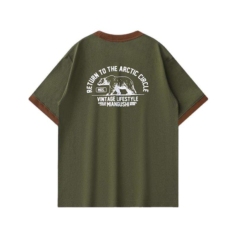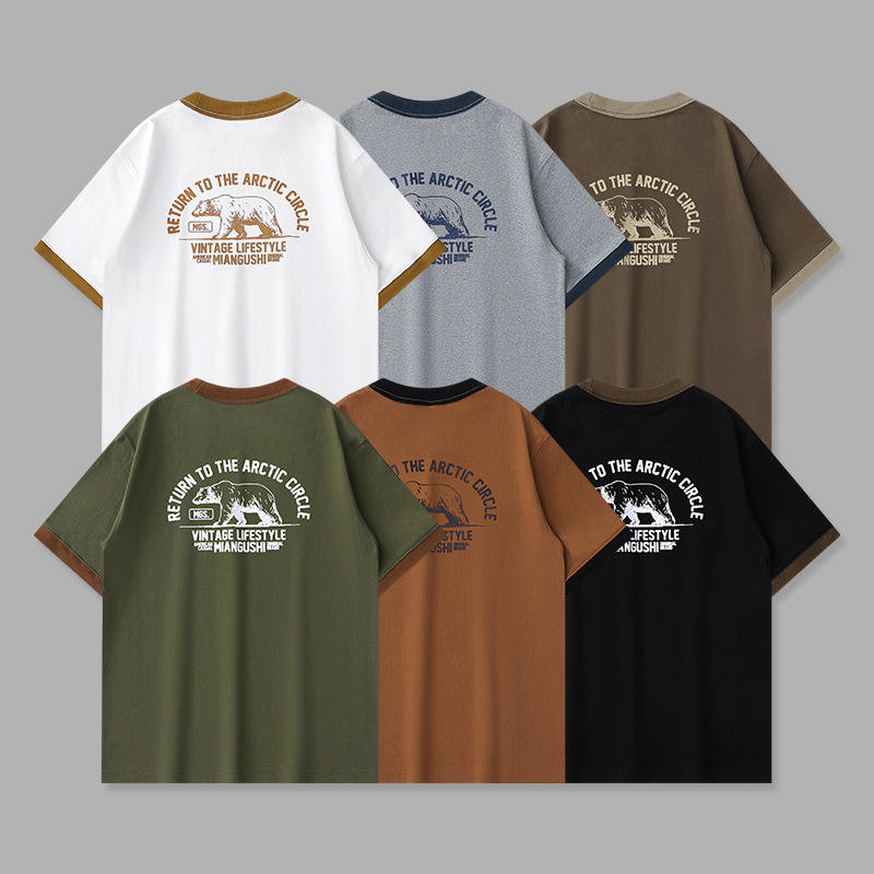 T-shirt graphique pour hommes à la mode de haute qualité ours polaire impression illustration garniture contrastée coupe régulière 100% coton respirant Streetwear