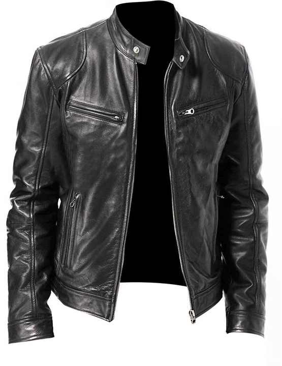 Veste bomber tendance de haute qualité, coupe slim, coupe-vent, col roulé pour homme, en cuir noir, fermeture éclair, respirante, imperméable, réversible
