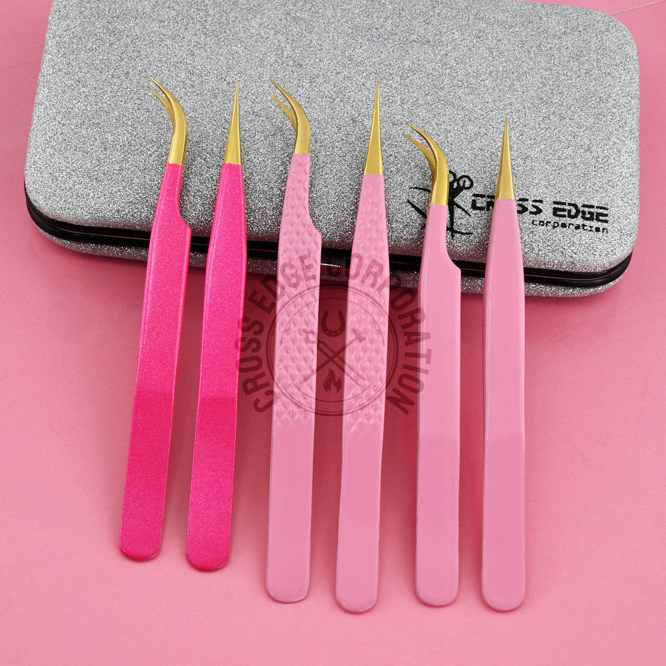 Product name:Tweezer Pink and Lightweight Eyelash Extension Tweezers with Gold Tip
