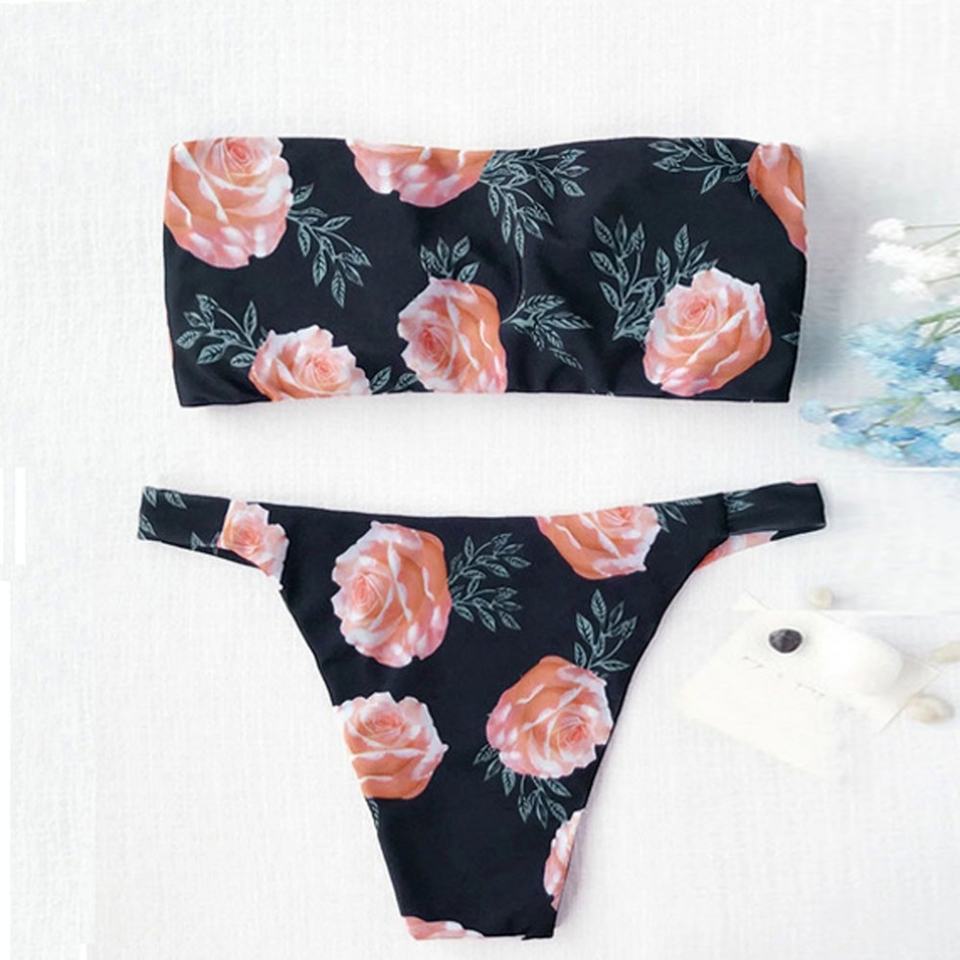 Maillots de bain deux pièces de haute qualité avec motifs floraux personnalisés, réversibles, respirants, séchage rapide, coupe haute, bikinis push-up - Taille XL