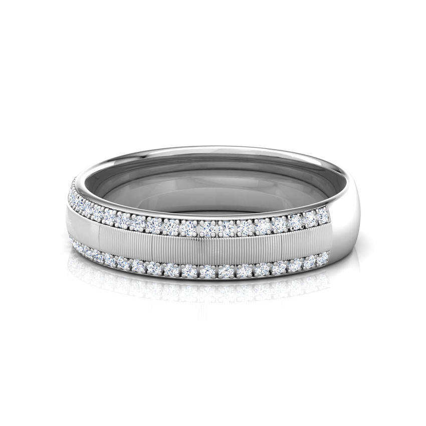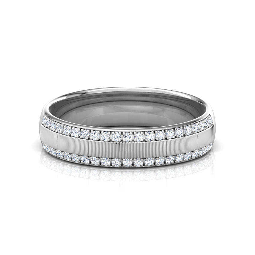 Bague de fiançailles en or blanc 14 carats à deux rangées Moissanite VVS à coupe brillante texturée de haute qualité pour anniversaire de fête cadeau
