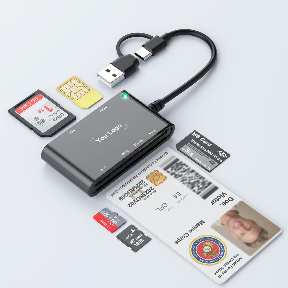 Lecteur et graveur de cartes de paiement ATM, SIM, SD, TF, USB Type-C externe 6-en-1 de haute qualité avec interface USB pour téléphone, PC et ordinateur portable