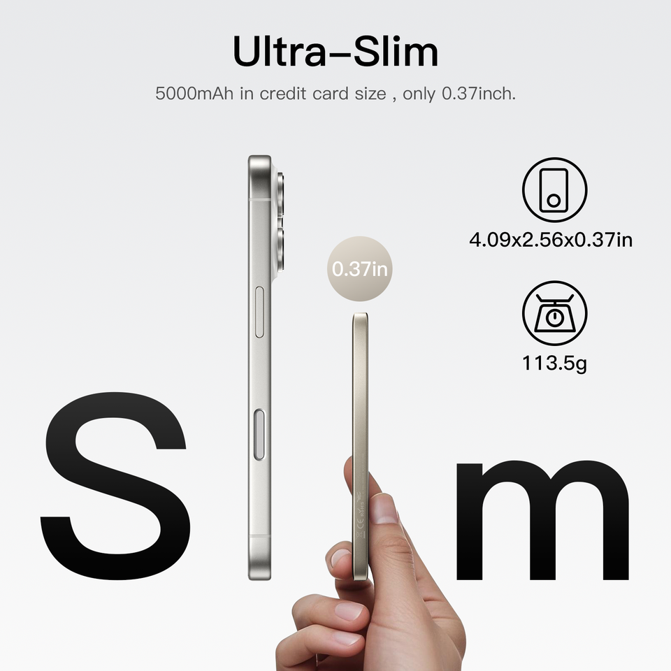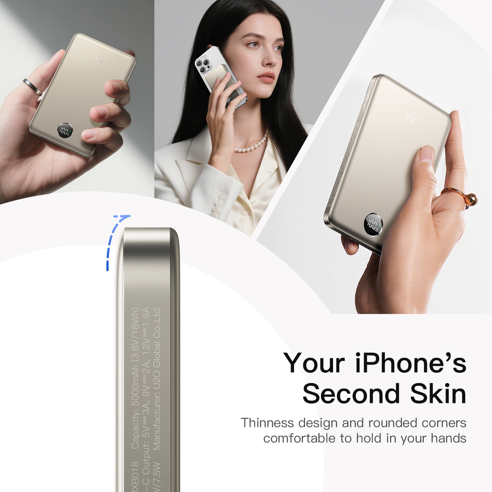 Banque d'Énergie Magnétique Ultra Mince de Haute Qualité, Chargeur iPhone Portable Mini 5000mAh avec Affichage Numérique LED et Charge Rapide Sans Fil