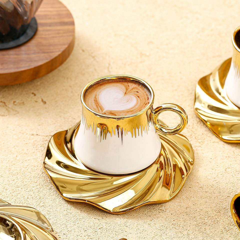 Forme:Tasses en céramique Gold Edge avec soucoupes