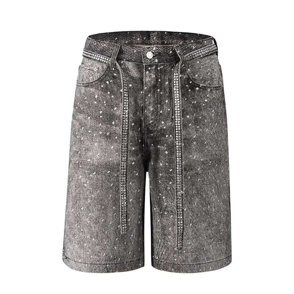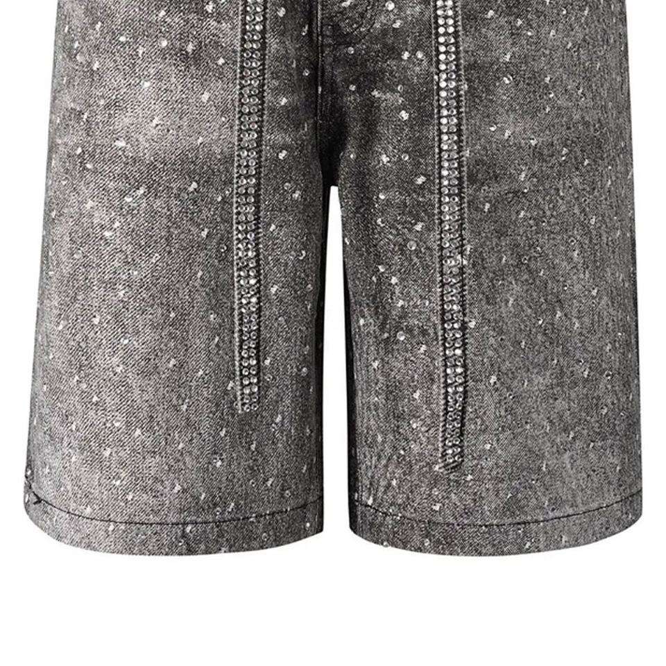 Shorts en jean unisexes de haute qualité, effet délavé, entièrement ornés de strass, sur mesure, shorts en jean brillants pour hommes, jorts en jean pour l'été