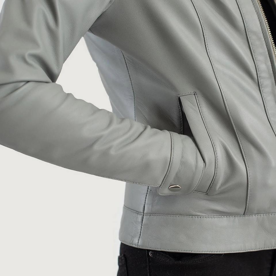 Nom du produit:Veste en cuir PU gris à col classique