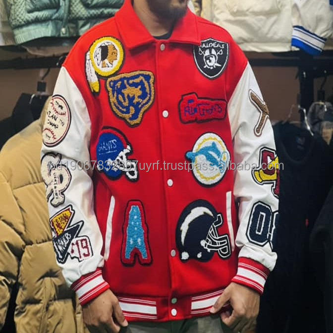 Veste universitaire de haute qualité pour l'hiver avec logo personnalisé et broderie Veste de baseball universitaire pour hommes avec fermeture Blouson bombardier Lot en stock