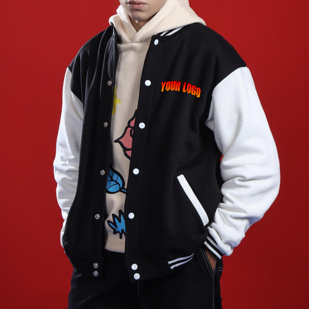 Veste universitaire de haute qualité, hiver, logo personnalisé, broderie, design, veste de baseball universitaire pour homme, fermeture, veste bomber OEM