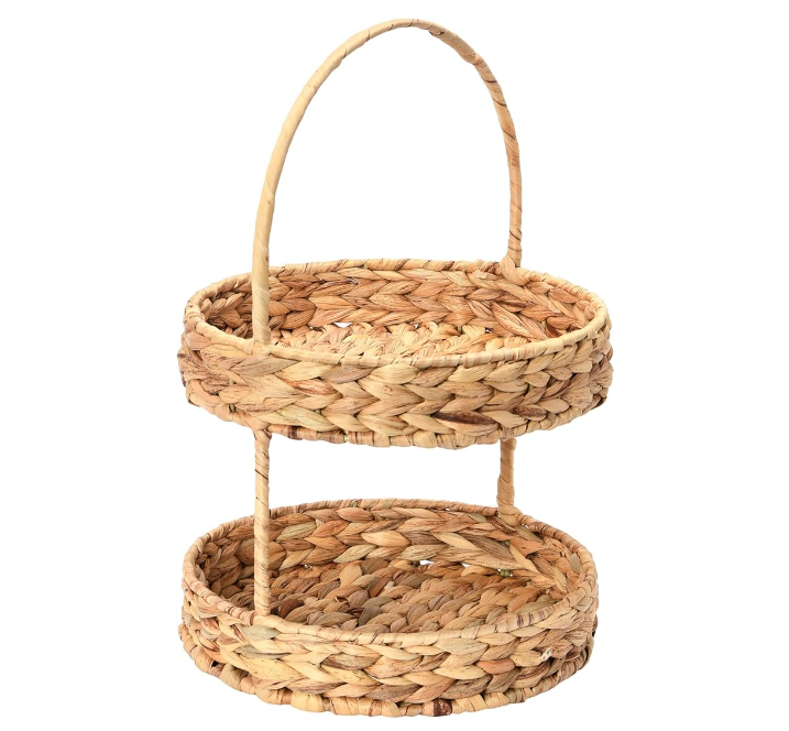 Haute qualité vietnamien 2 niveaux tissé à la main jacinthe d'eau et rotin écologique fruits légumes plateau de service pour la cuisine à domicile