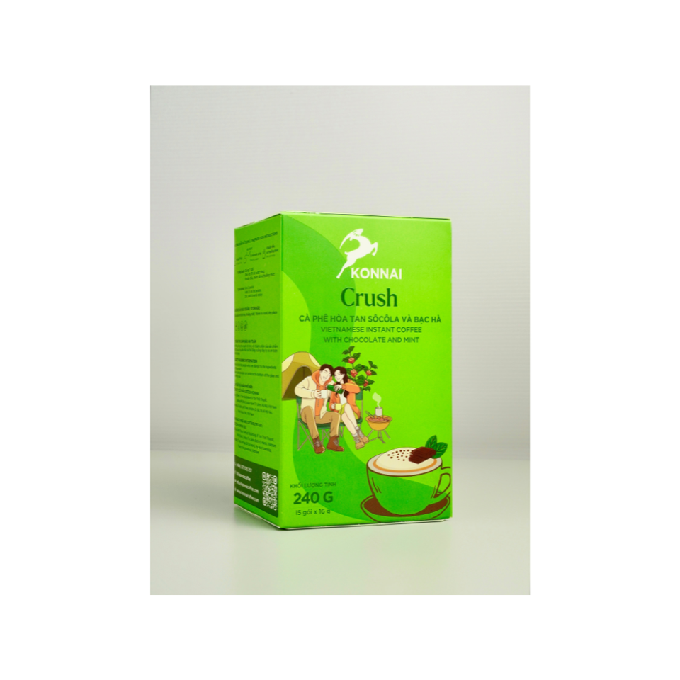 Café instantané Robusta vietnamien de haute qualité aux saveurs de chocolat et de menthe 15 bâtonnets x 16g goût sucré dans un emballage en boîte