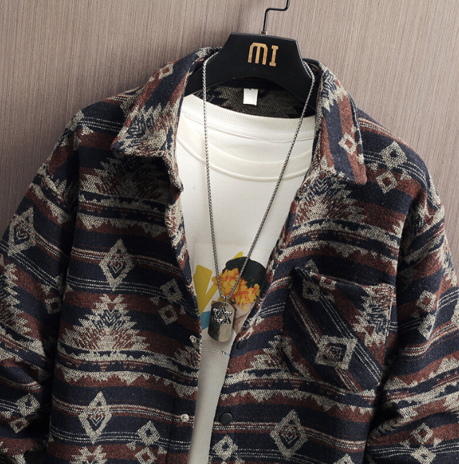 Manteau de veste en laine indigène aztèque vintage de haute qualité pour hommes Collection automne hiver-Vente en gros