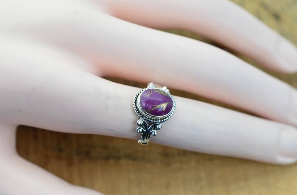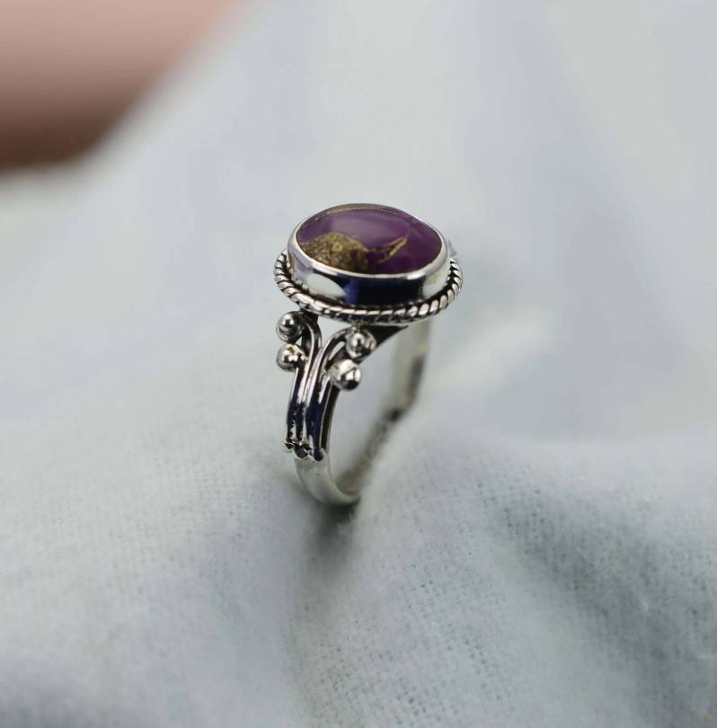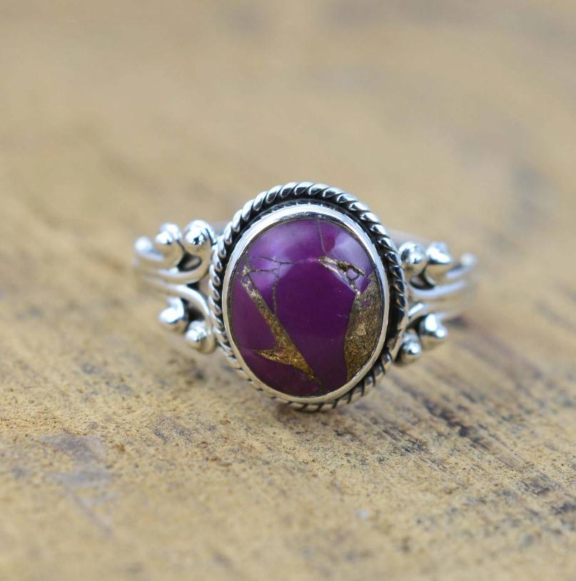 Bague en argent sterling 925 de haute qualité, vintage, faite à la main, avec un véritable turquoise violet ovale serti dans un cadre de style Baho, BISMILLAH