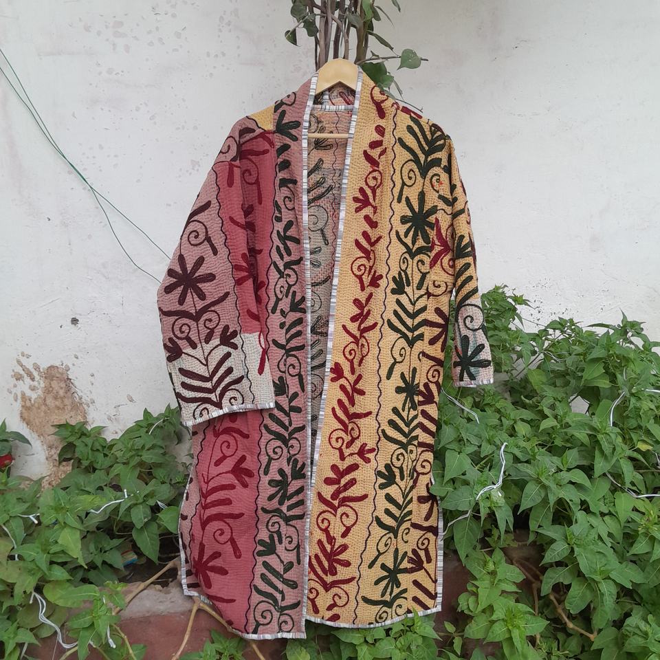 Design:Kantha Long Jackets With Embroidery Design & Long Sleeve