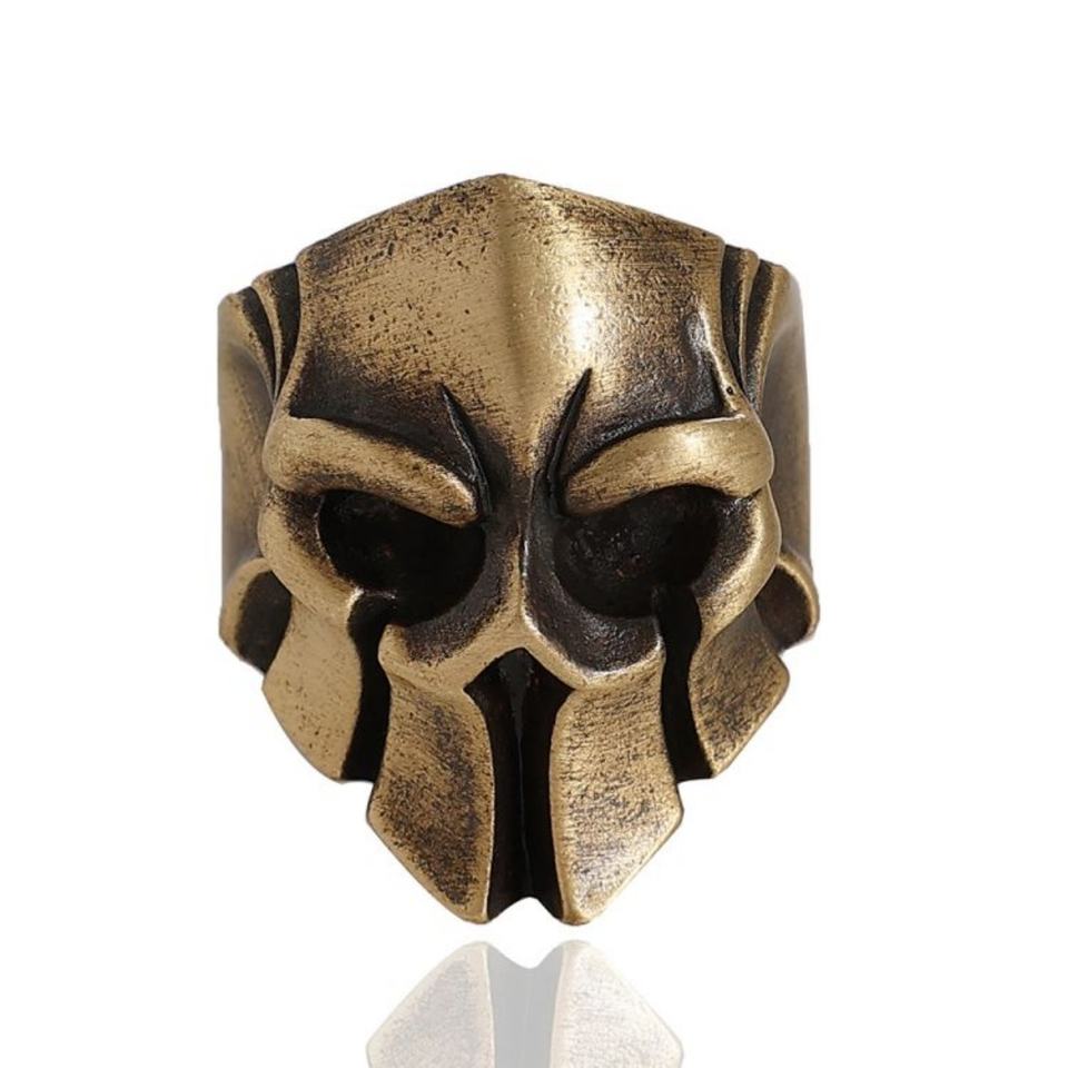 Bague Squelette Noire de Haute Qualité Style Vintage, Bague Masque de Guerrier Spartan en Laiton, Bague Crâne Unique pour Femmes et Hommes