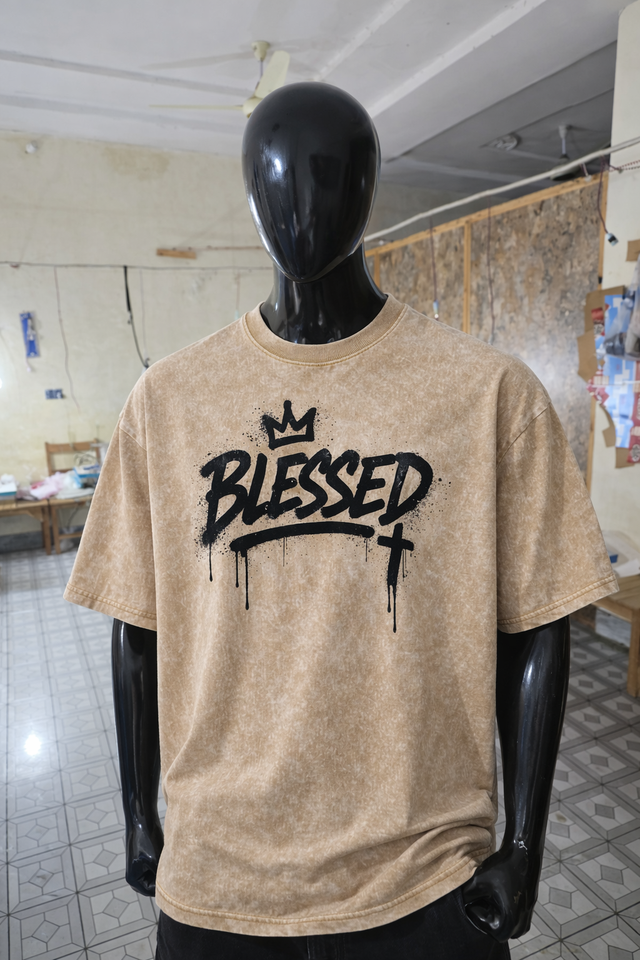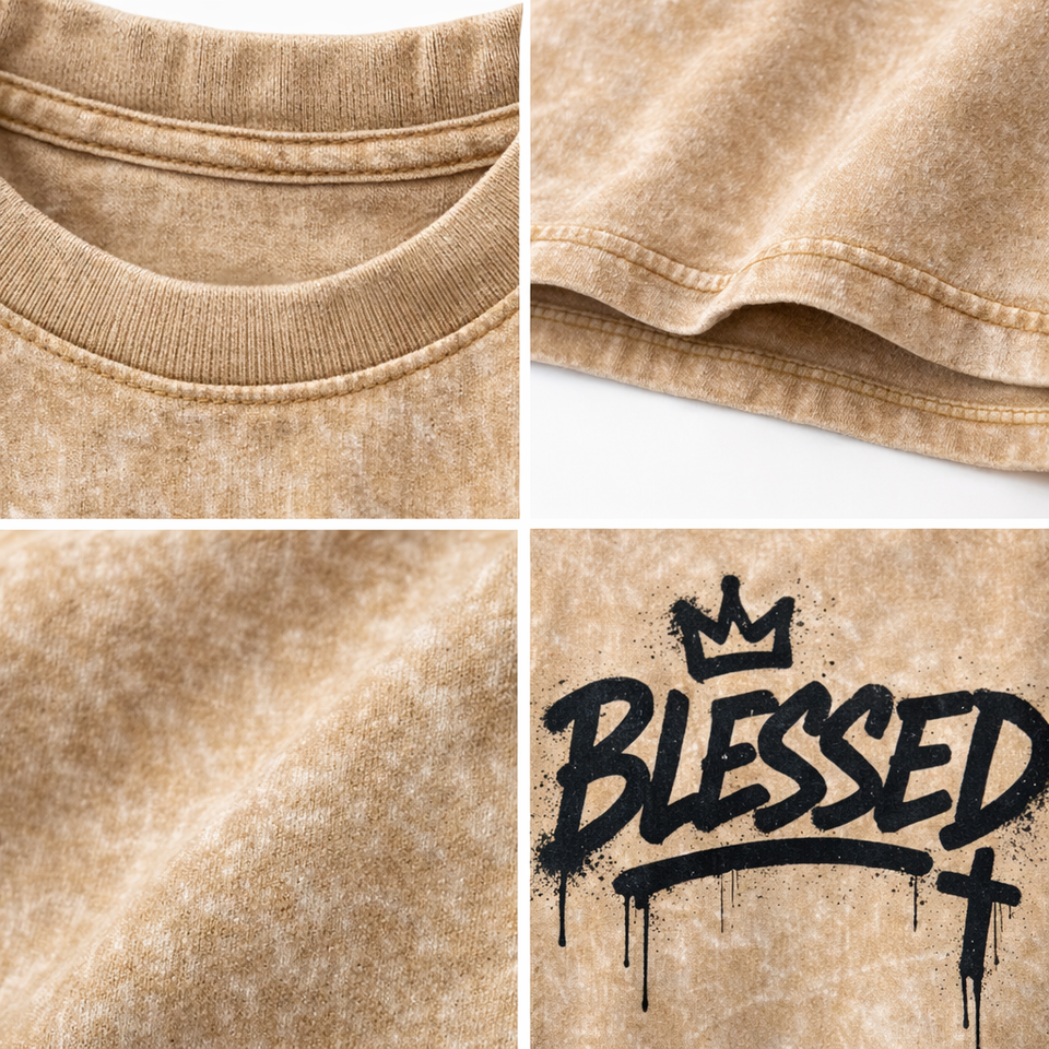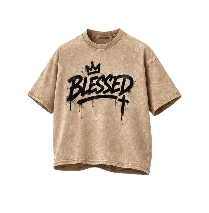 T-shirt graphique vintage de haute qualité avec croix 'Blessed' - T-shirt oversize délavé style hip-hop pour hommes et femmes