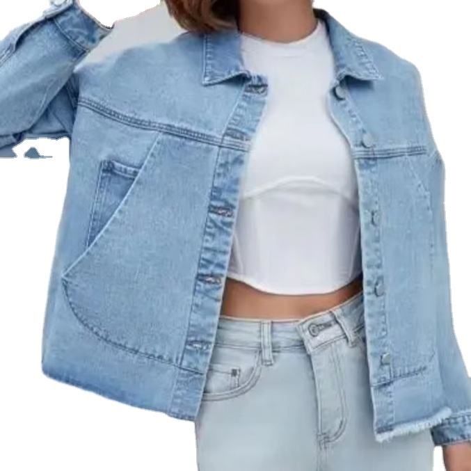 High Quality Vintage Winter Casual Denim Jacket with Embroidery Acid Wash 100% Cotton for Women