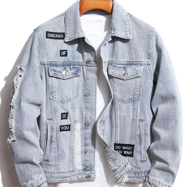 High Quality Vintage Winter Casual Embroidery Denim Jacket for Men 100% Cotton Acid Wash