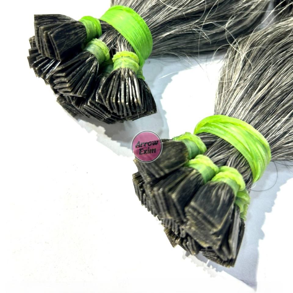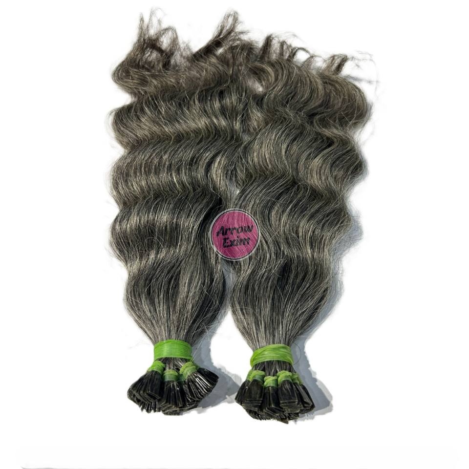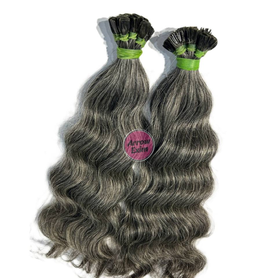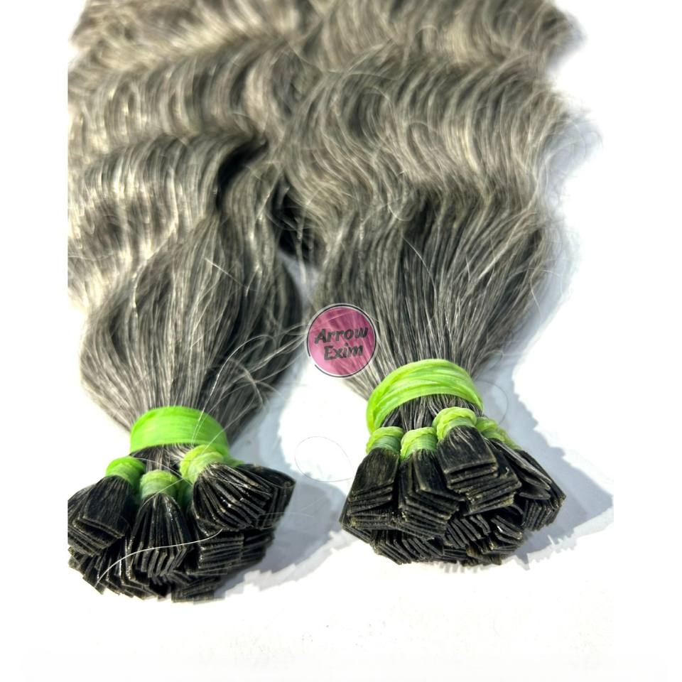 Extensions de cheveux vierges indiens Remy de qualité supérieure 12A, provenant d'un seul donneur, bruts, non traités, gris naturel, ondulés, à pointe plate, Arrow Exim