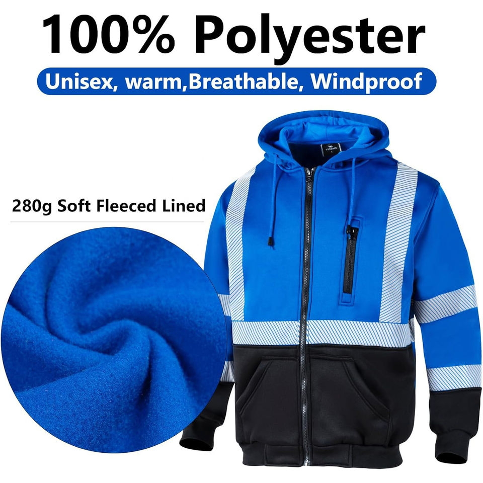 Sweat à capuche en polaire de sécurité réfléchissant de haute qualité pour hommes veste à capuche avec fermeture éclair sweat à capuche pour hommes logo personnalisé