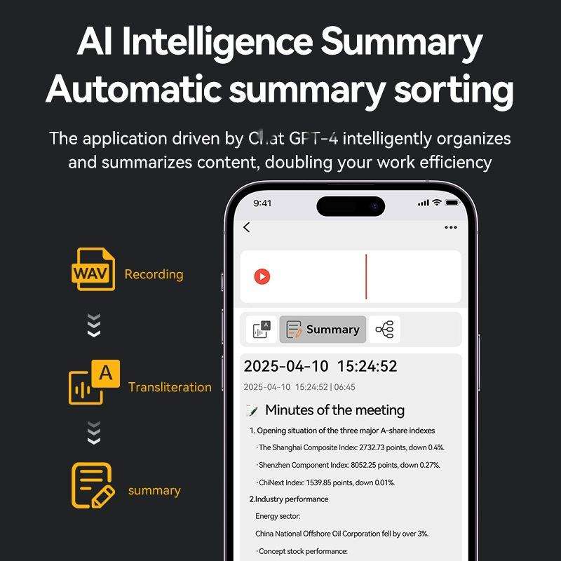Enregistreur vocal numérique intelligent de haute qualité avec IA pour la conversion vocale en texte, idéal pour les conférences professionnelles