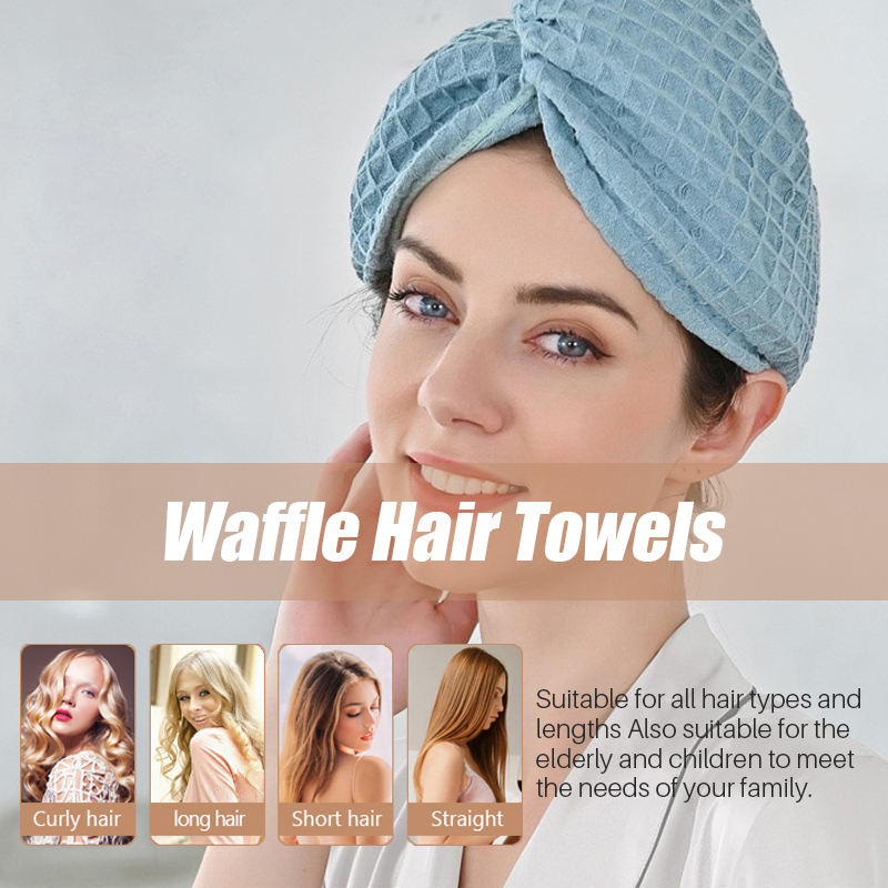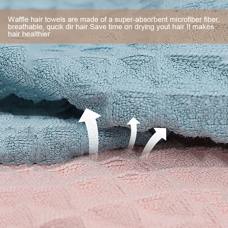 Serviette de bain et de douche en microfibre de haute qualité à texture gaufrée pour sécher les cheveux, avec boutons et boucle