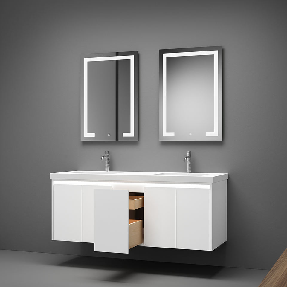 Meuble-lavabo mural moderne en bois massif de haute qualité avec miroir et charnières à fermeture douce, idéal pour appartement – Vietnam
