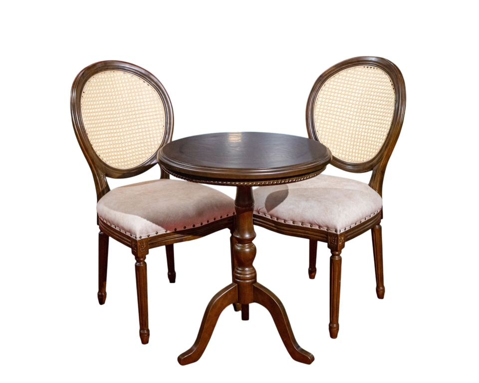 Haute qualité noyer rotin dos Louis chaise confortable coussin siège en bois massif Table basse ensemble meubles de maison décoratifs
