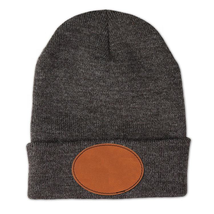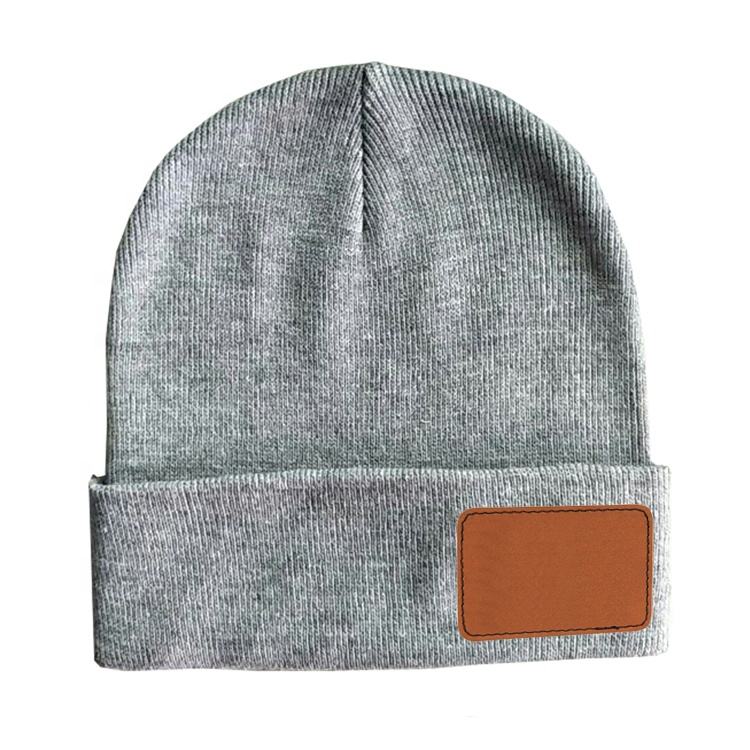 High Quality Warm Knitted Beanie Cap Custom Blank Leatherette Patch Hat Beanie for Men