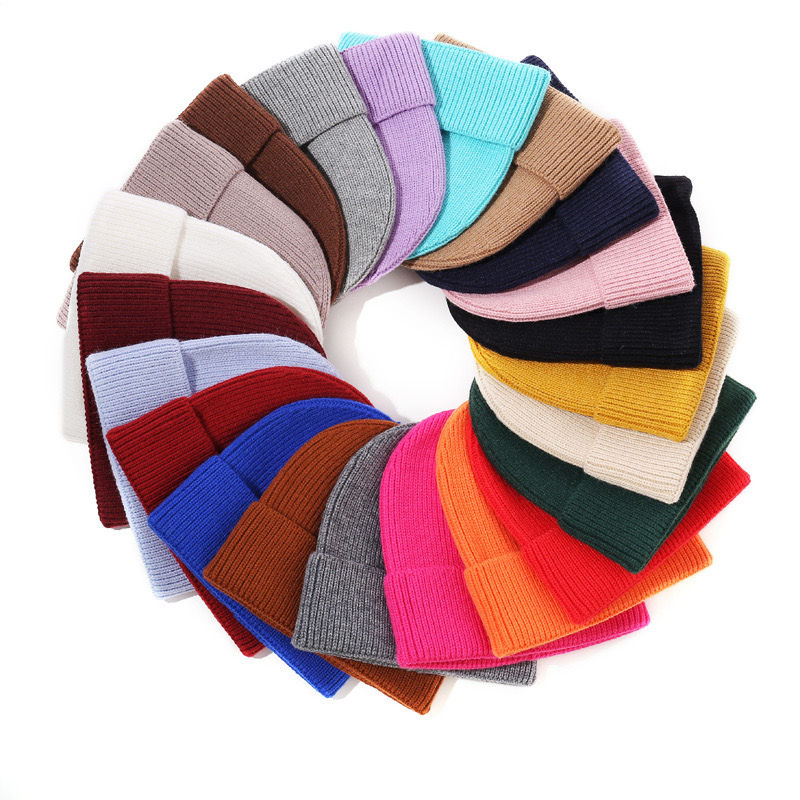 High Quality Warm Winter Caps Solid Color Thickened Knit Hat flat Knitted Custom Beanies Caps for Men and Women Casual Wear