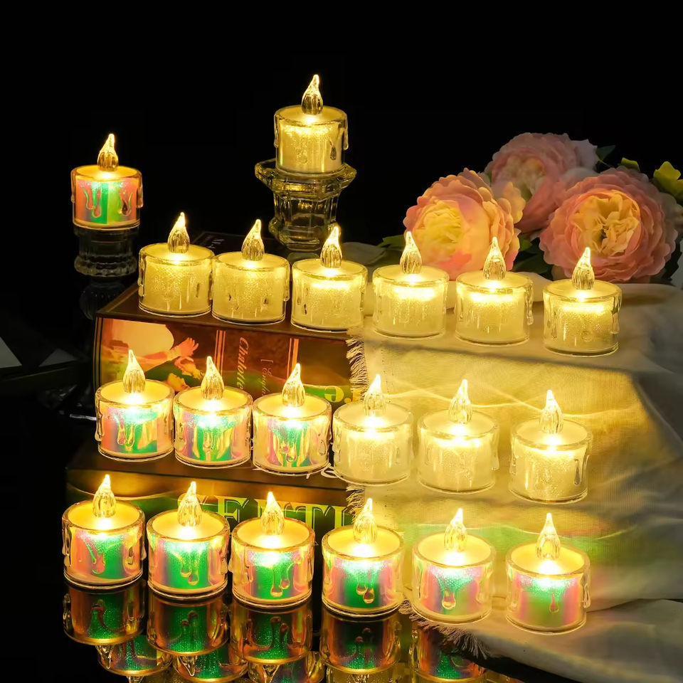 Bougies LED en plastique jaune chaud de haute qualité, effet goutte de cire, lumières de thé romantiques pour décoration de table, sans flamme, à piles