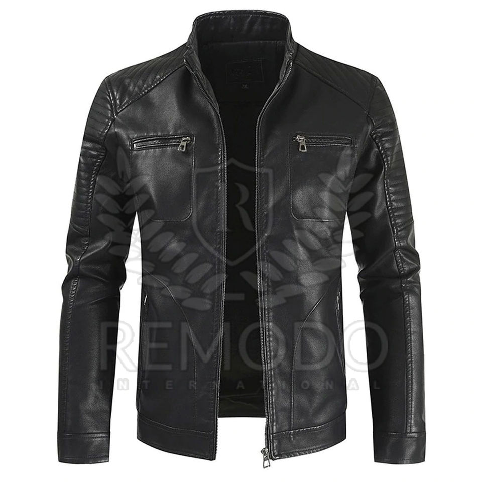 Blouson en cuir Pu homme, de haute qualité, court et lavable, Slim et à col montant, collection